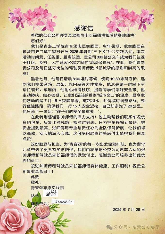 圓夢高考|“你們全力以赴,我們全程護航!”為保障高考期間交通順暢有序,東營市公交集團以高度的責任感提前布局、周密安排,傾力打造安全、高效的送考保障體系,誓為全市考生鋪就一條平安赴考的坦途。市公交集團選拔駕駛經驗豐富且服務意識突出的優秀駕駛員...[查看更多>>]